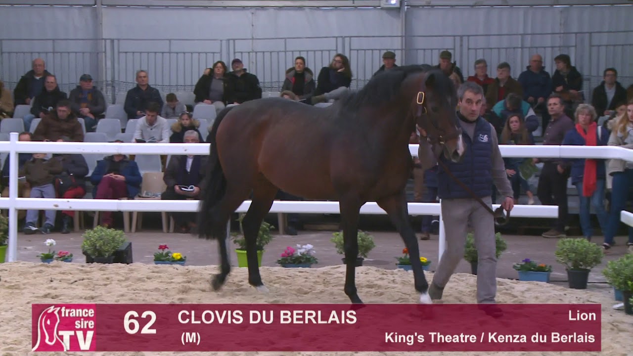 Présentation de l'étalon Pur-Sang CLOVIS DU BERLAIS (fr), né en 2011, par King's Theatre (ire) et Kenza du Berlais (fr), par Kahyasi (ire) ; au Salon des Étalons 2019, à l'hippodrome du Lion-d'Angers, le 12 janvier, par le Haras du Lion